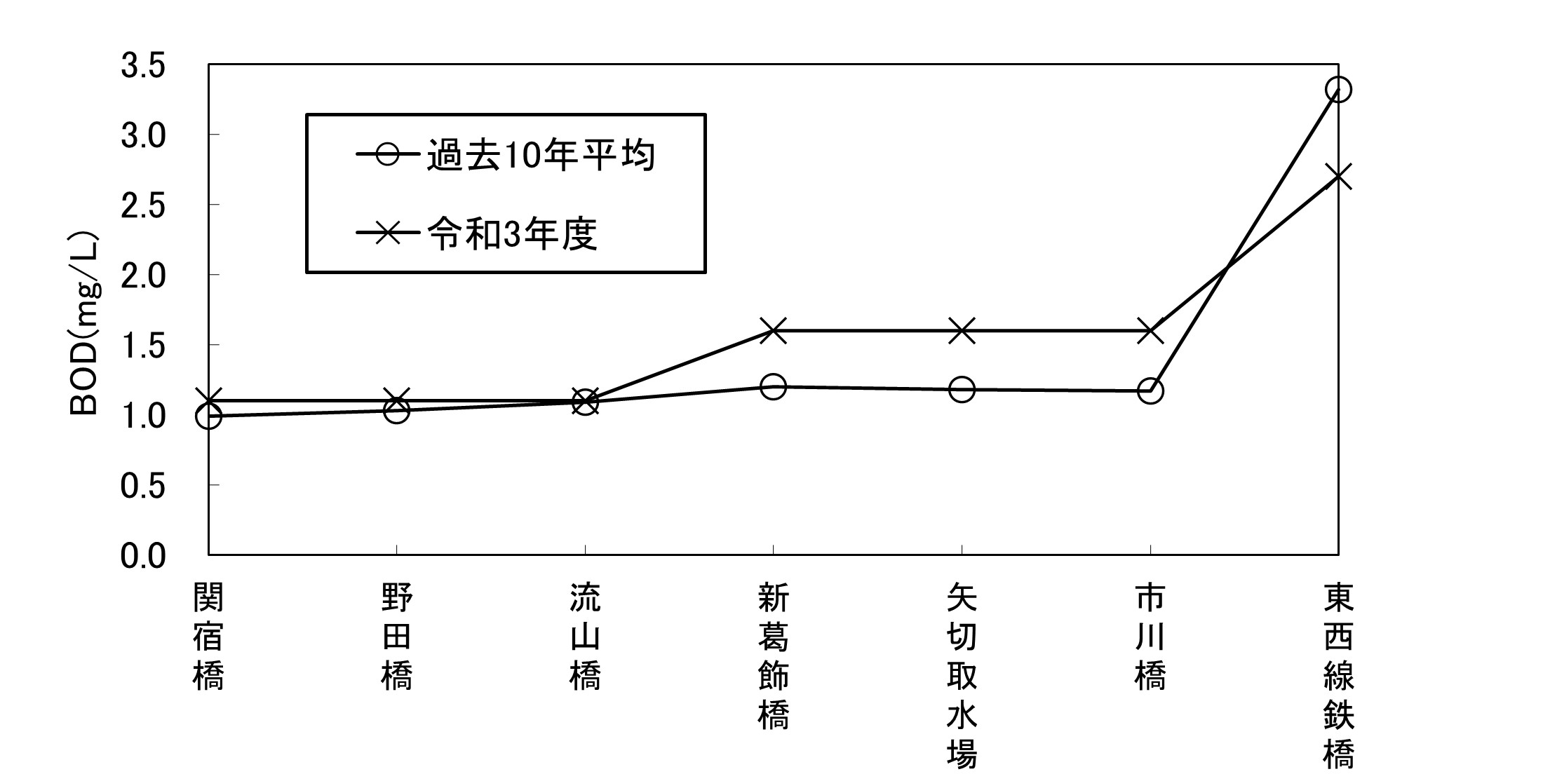 【千葉県】資料編 6.6.1 江戸川の水質縦断変化図(BOD年平均値)