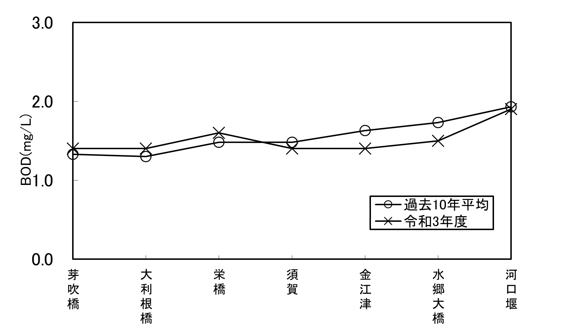 【千葉県】資料編 6.6.2 利根川の水質縦断変化図(BOD年平均値)