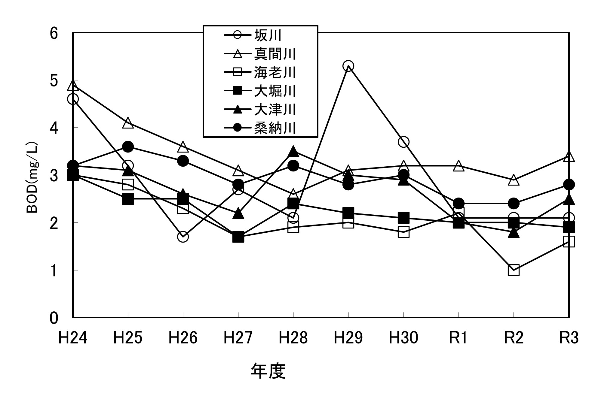 【千葉県】資料編 6.7.4 主要都市河川の水質経年変化(BOD年平均値)