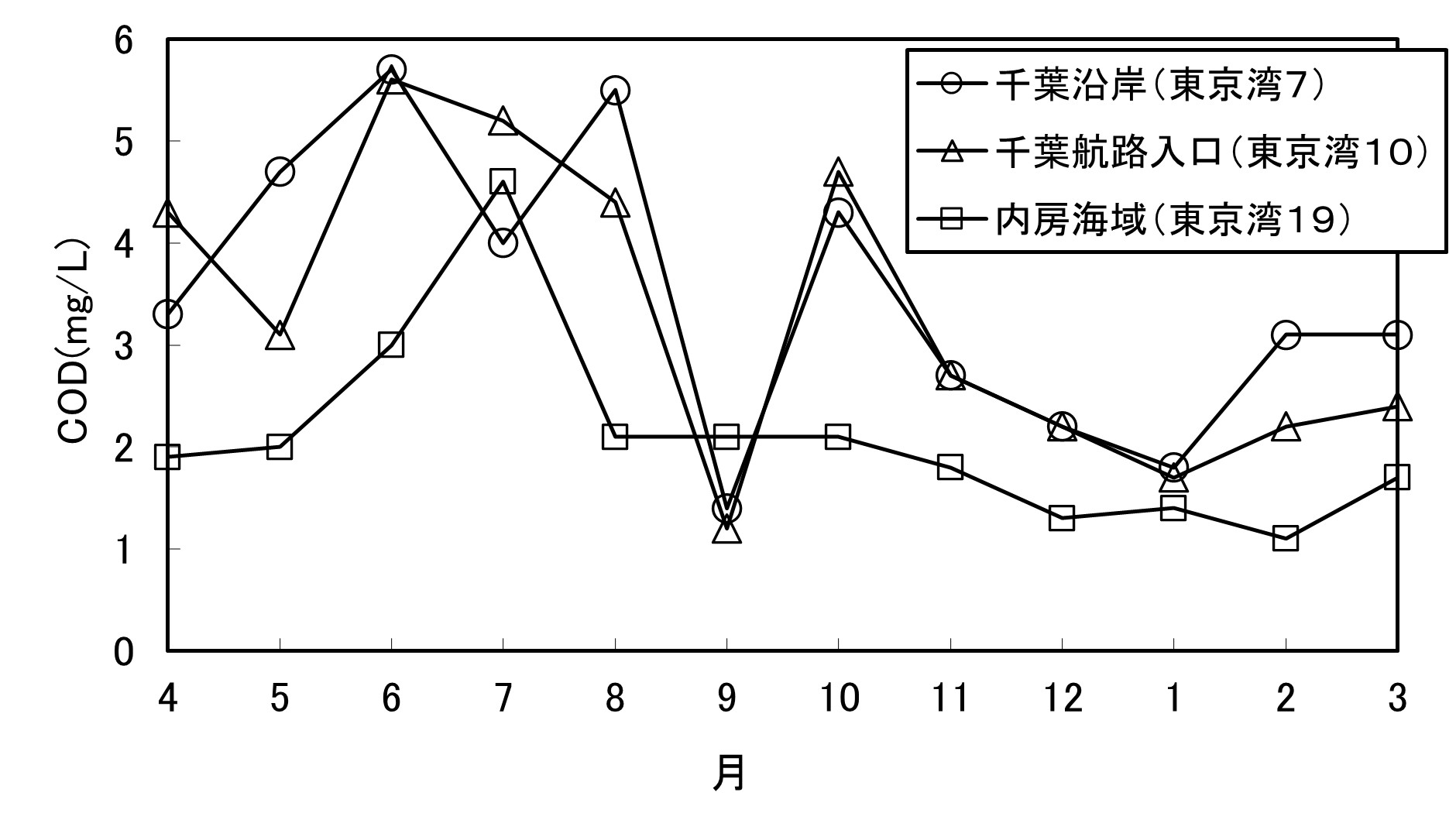 【千葉県】資料編 6.9 東京湾(表層)のCOD年間変動の状況(令和3年度)