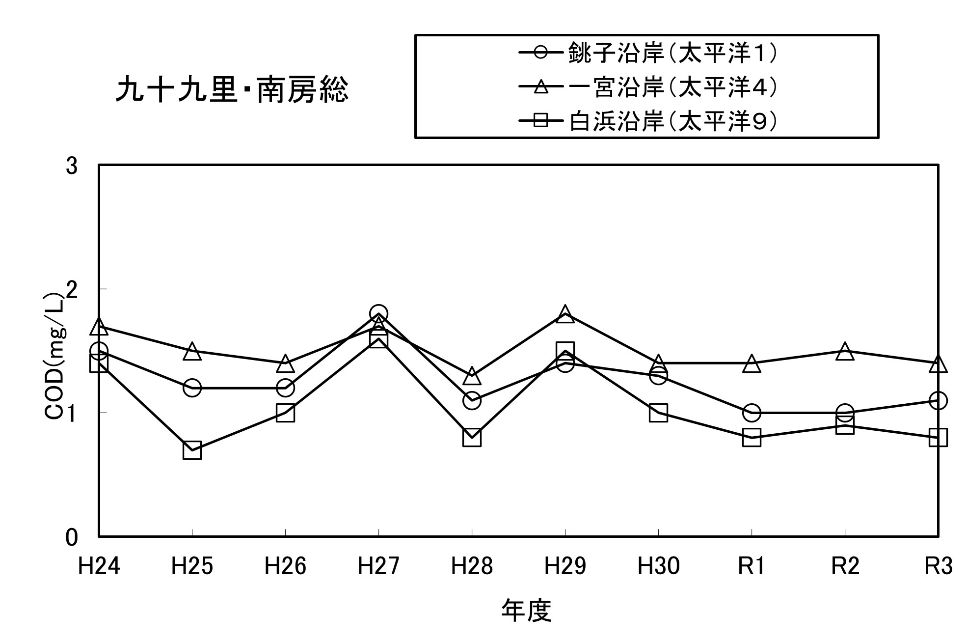 【千葉県】資料編 6.10.3 九十九里・南房総の水質経年変化(COD年平均値)