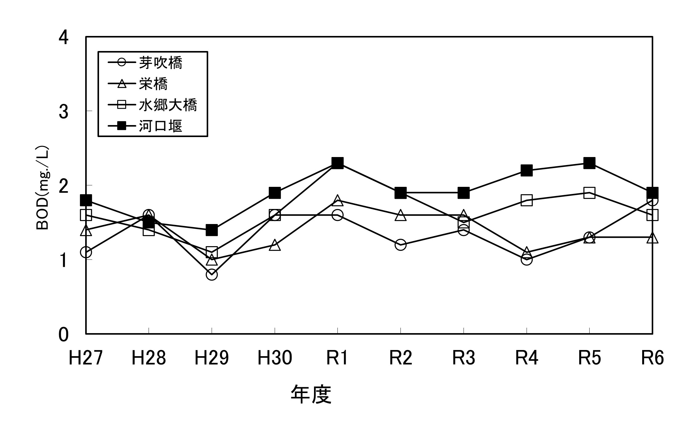 【千葉県】資料編 6.7.2 利根川の主要地点の水質経年変化(BOD年平均値)