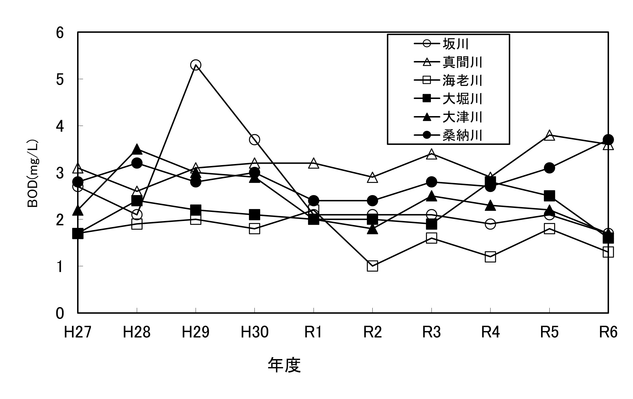 【千葉県】資料編 6.7.4 主要都市河川の水質経年変化(BOD年平均値)