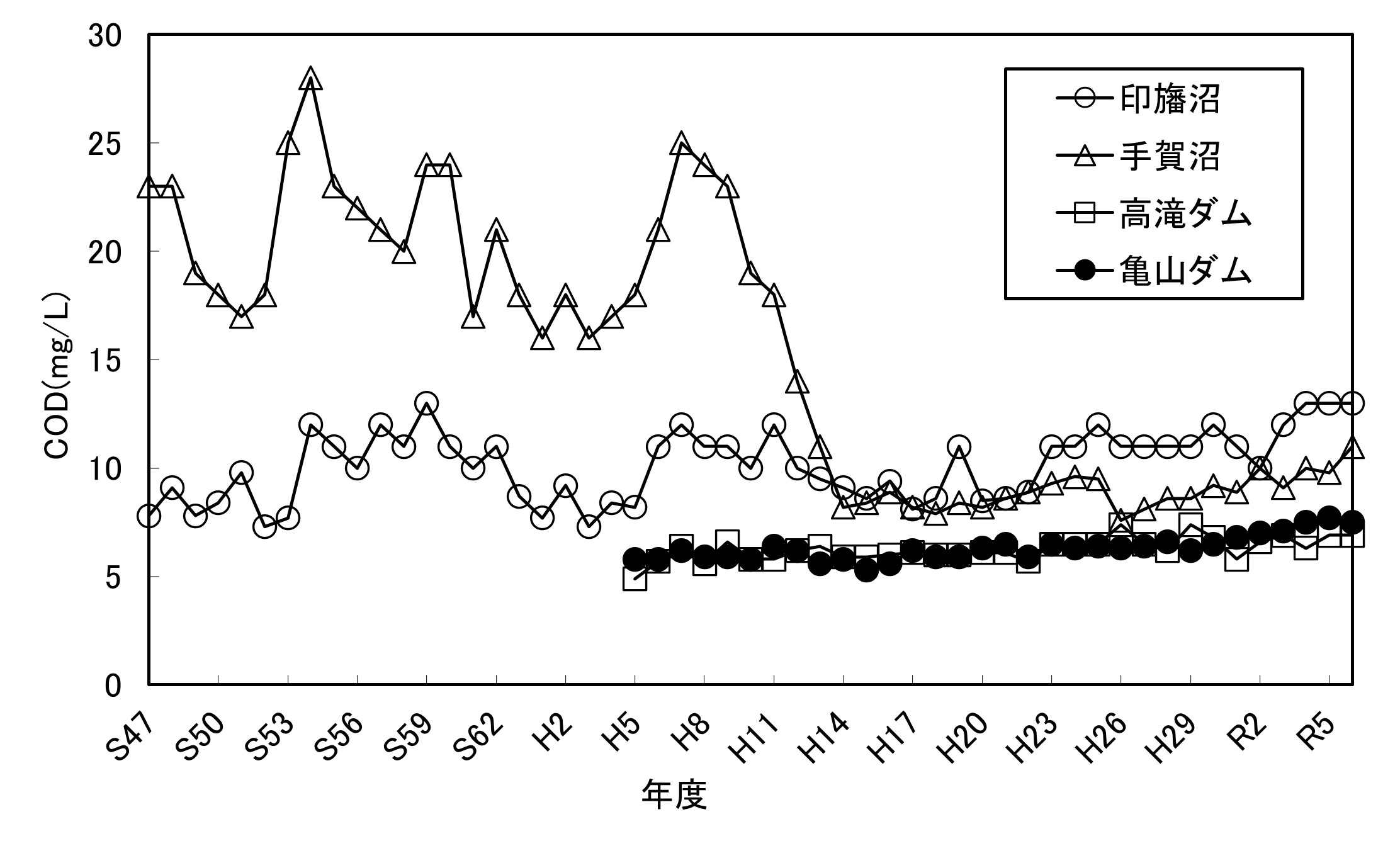【千葉県】資料編 6.8 湖沼の水質経年変化(COD年平均値)