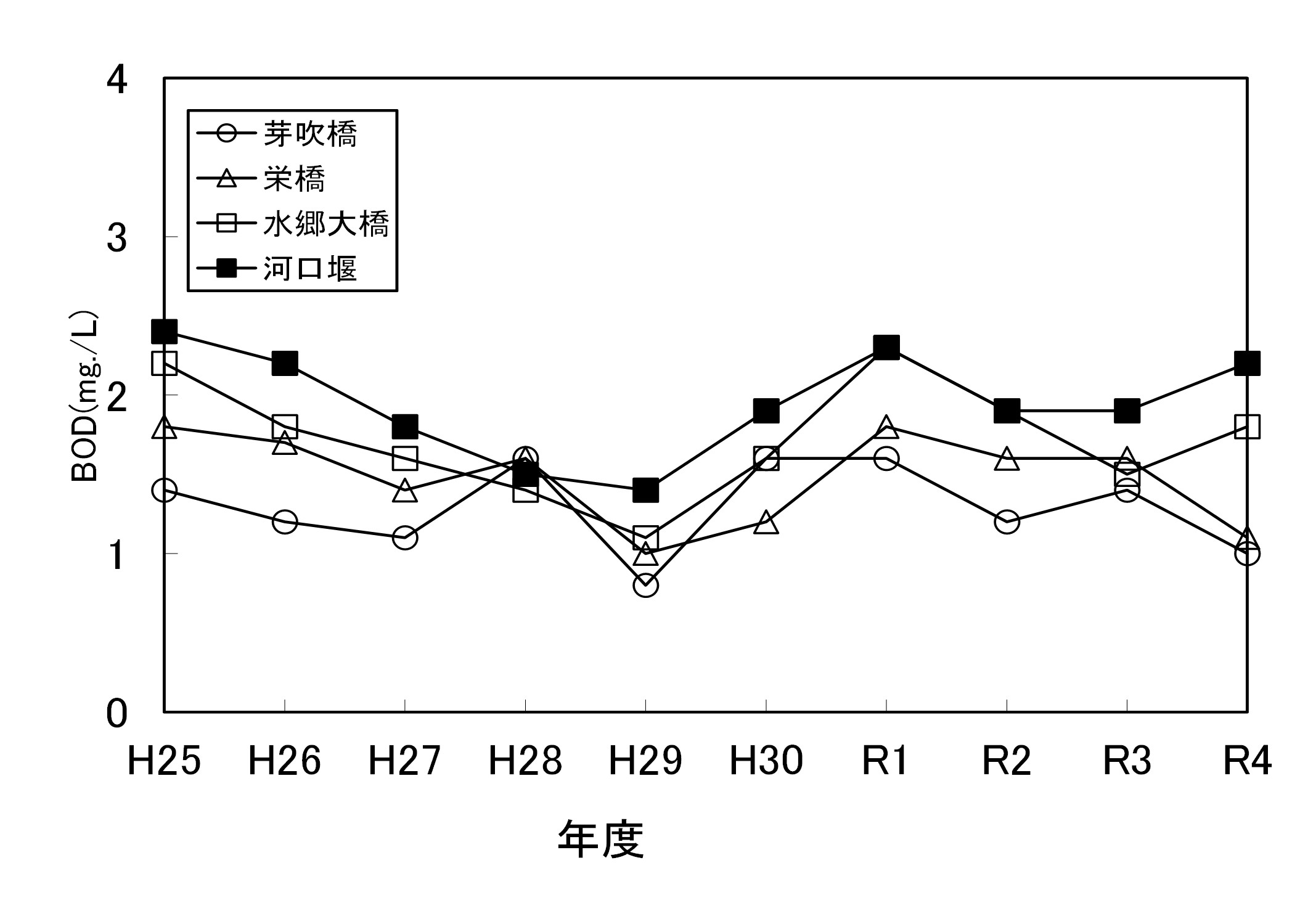 【千葉県】資料編 6.7.2 利根川の主要地点の水質経年変化(BOD年平均値)