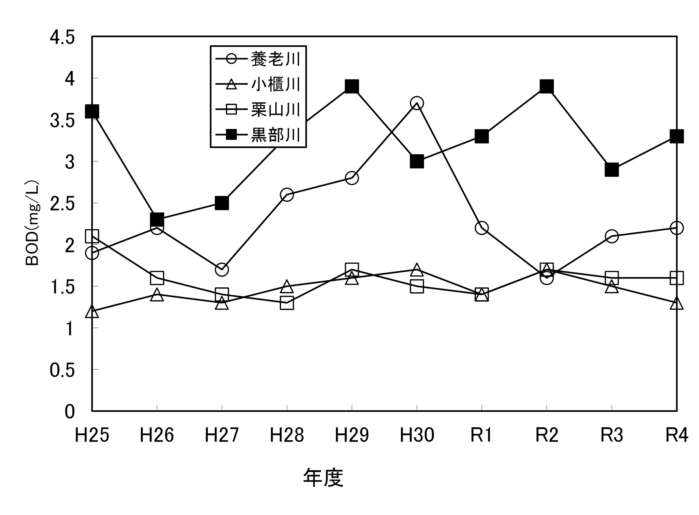 【千葉県】資料編 6.7.3 県内主要河川の水質経年変化(BOD年平均値)