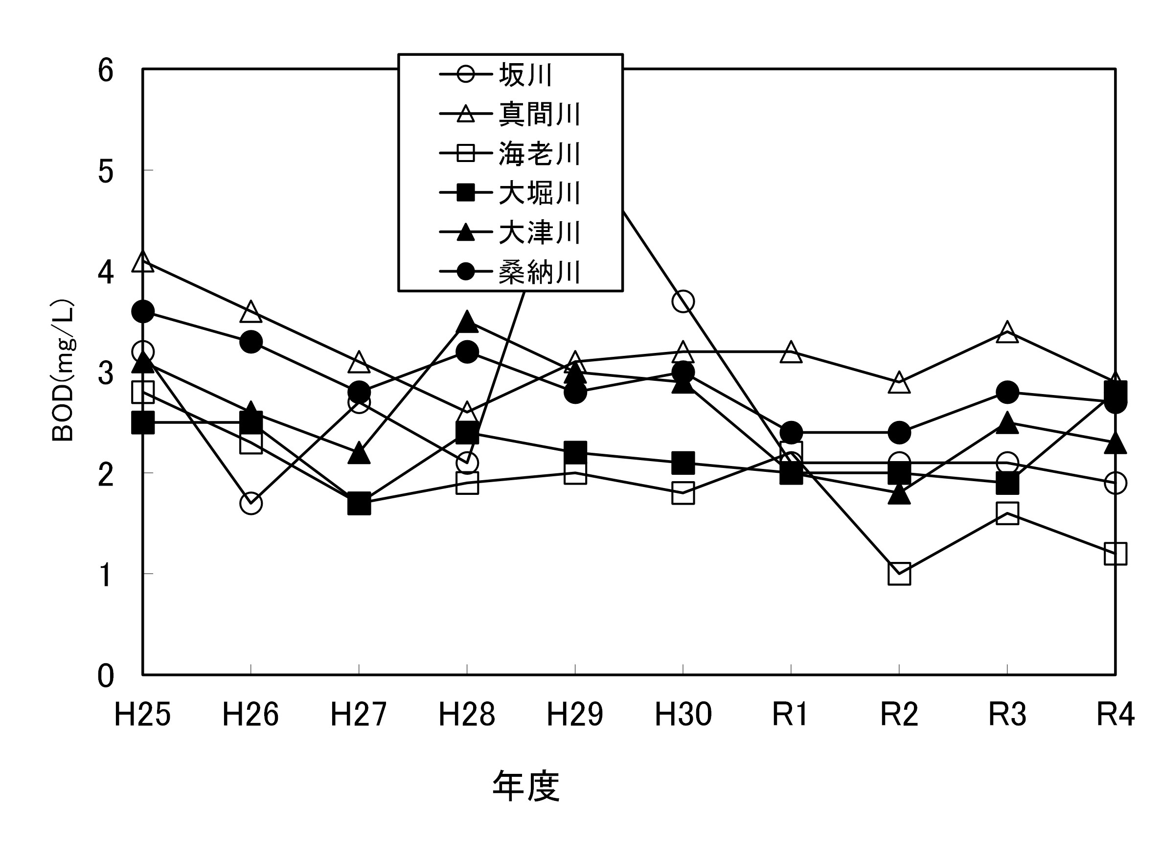 【千葉県】資料編 6.7.4 主要都市河川の水質経年変化(BOD年平均値)